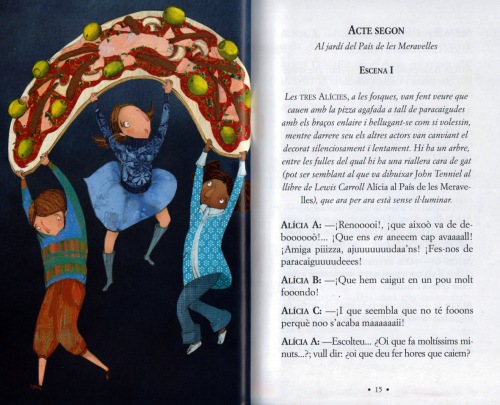 Extret de Pizza tres Alícies (No perdem el cap). Ed. Cadí. Il·lustrat per Núria Feijoó